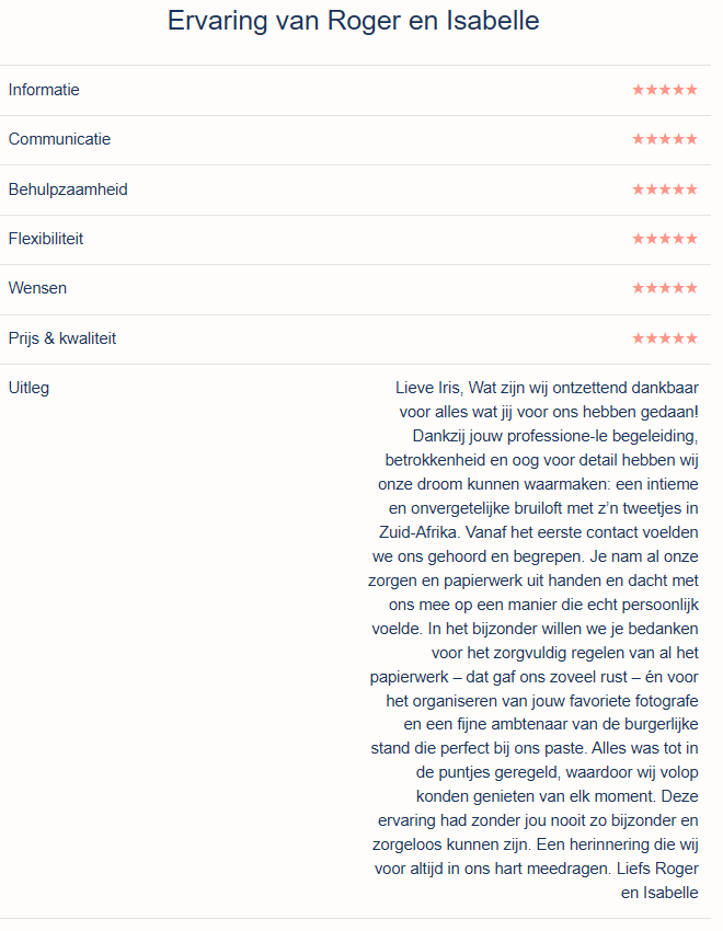 Ik ben Iris, de weddingplanner voor Zuid-Afrika!