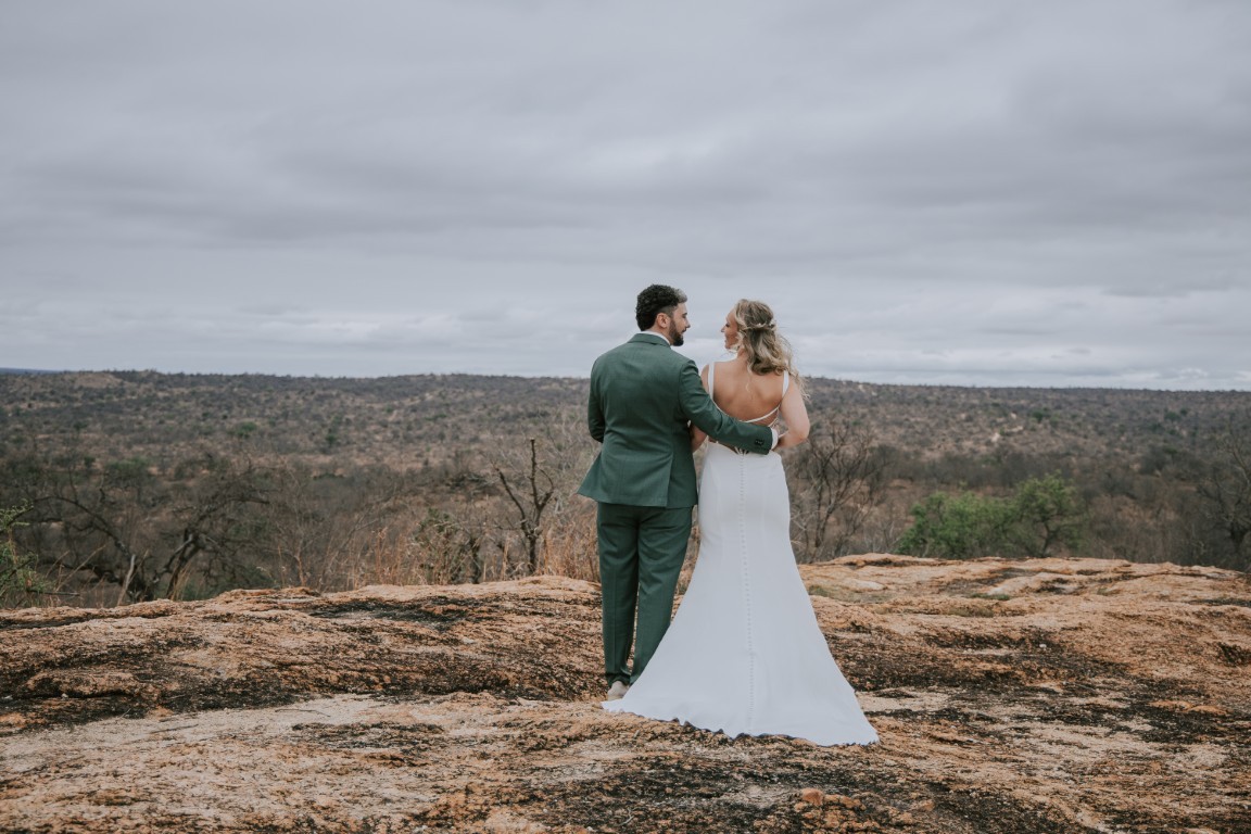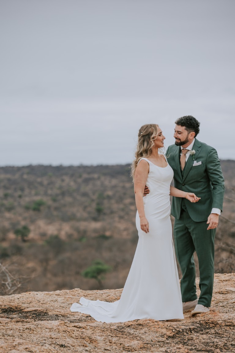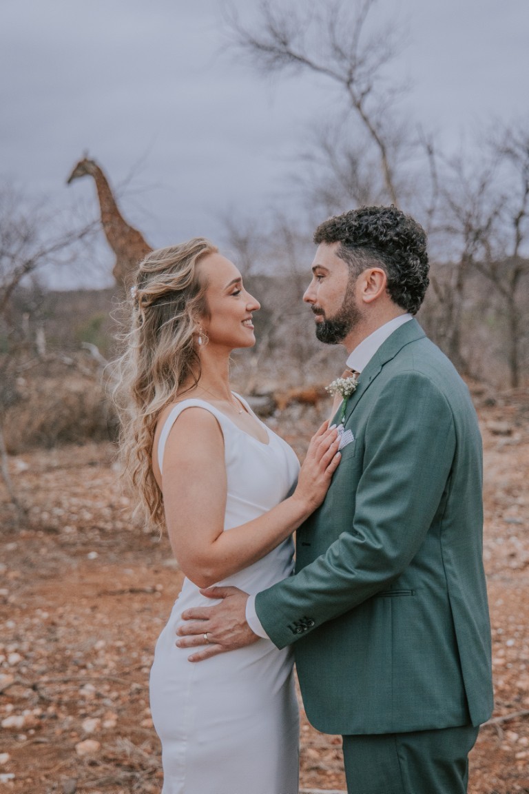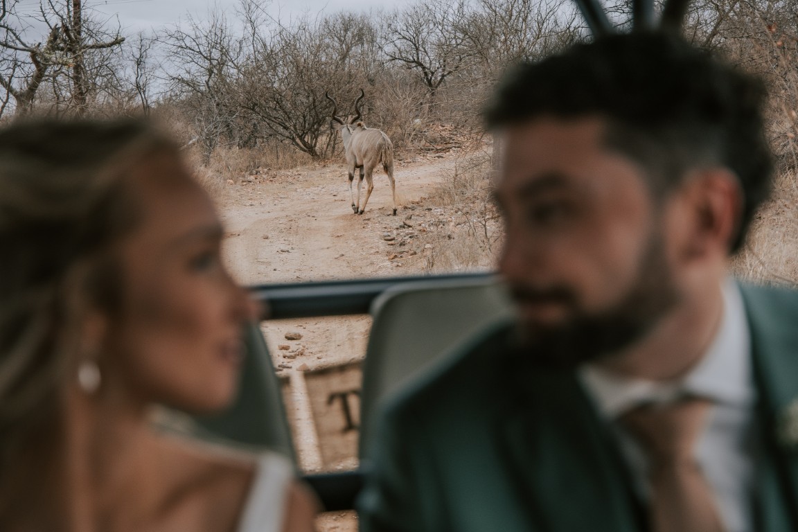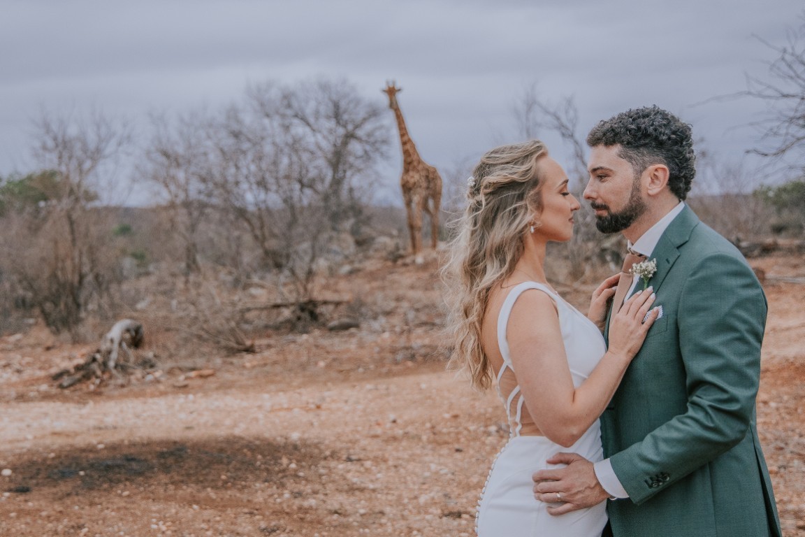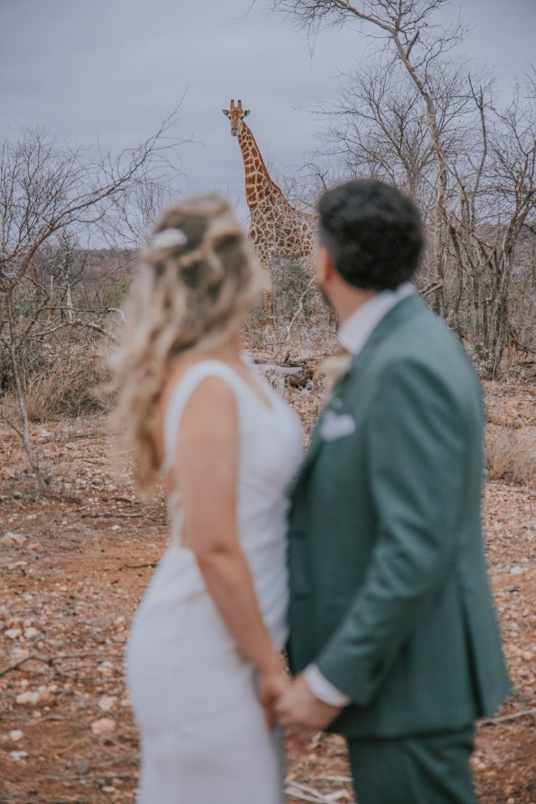 In het hart van de Afrikaanse bush gaven zij elkaar het jawoord, omringd door een indrukwekkend landschap en wilde dieren op de achtergrond. De uitgestrekte natuur en het pure karakter van de omgeving zorgden voor een unieke en ontspannen sfeer – precies zoals zij het voor ogen hadden.