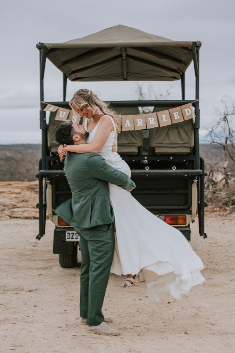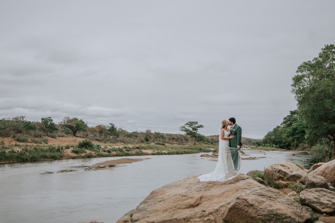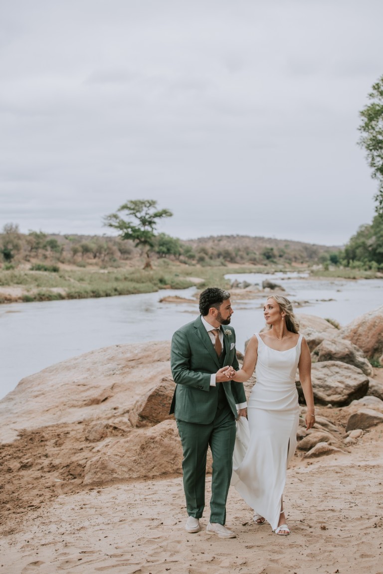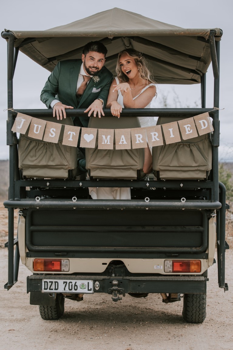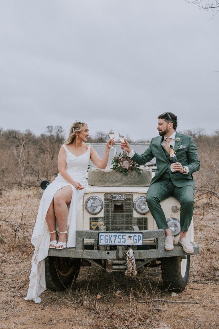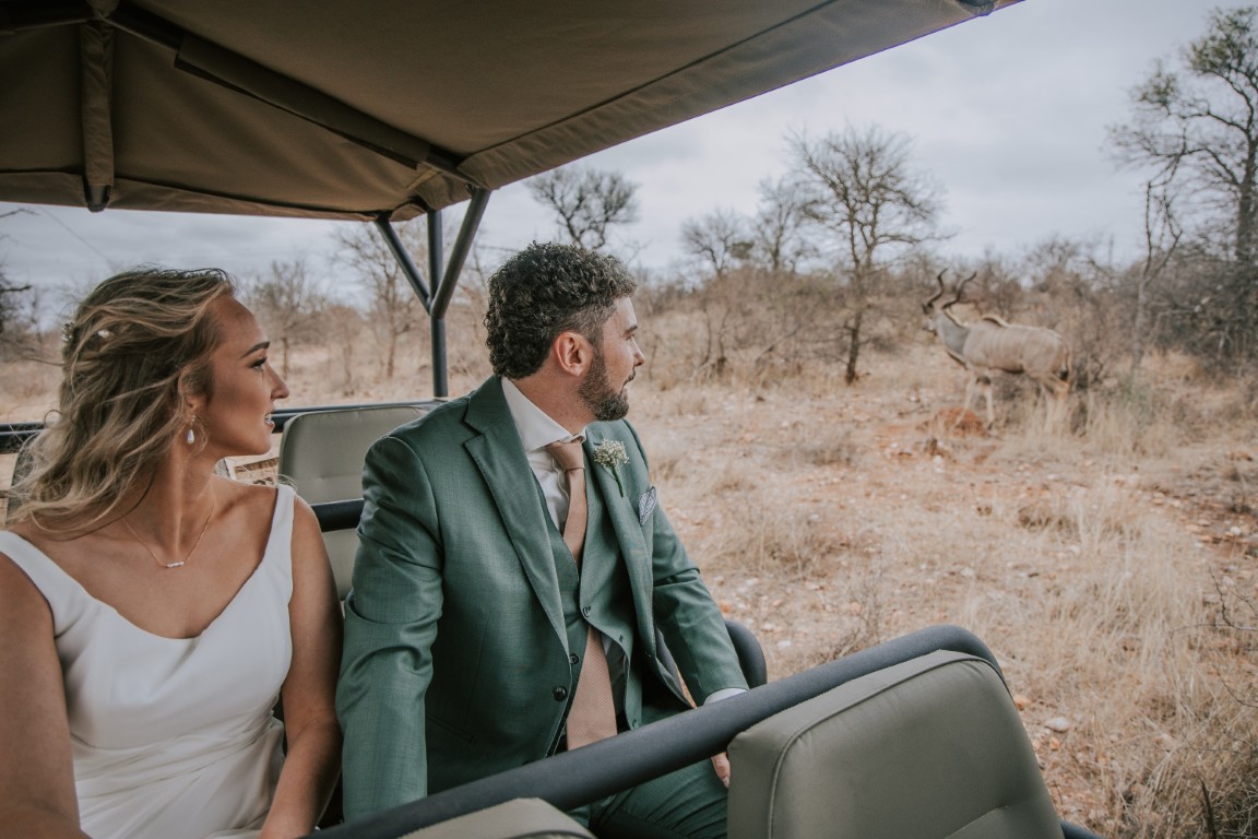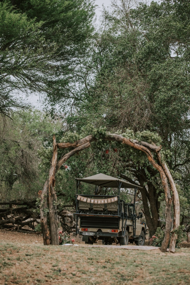 In het hart van de Afrikaanse bush gaven zij elkaar het jawoord, omringd door een indrukwekkend landschap en wilde dieren op de achtergrond. De uitgestrekte natuur en het pure karakter van de omgeving zorgden voor een unieke en ontspannen sfeer – precies zoals zij het voor ogen hadden.