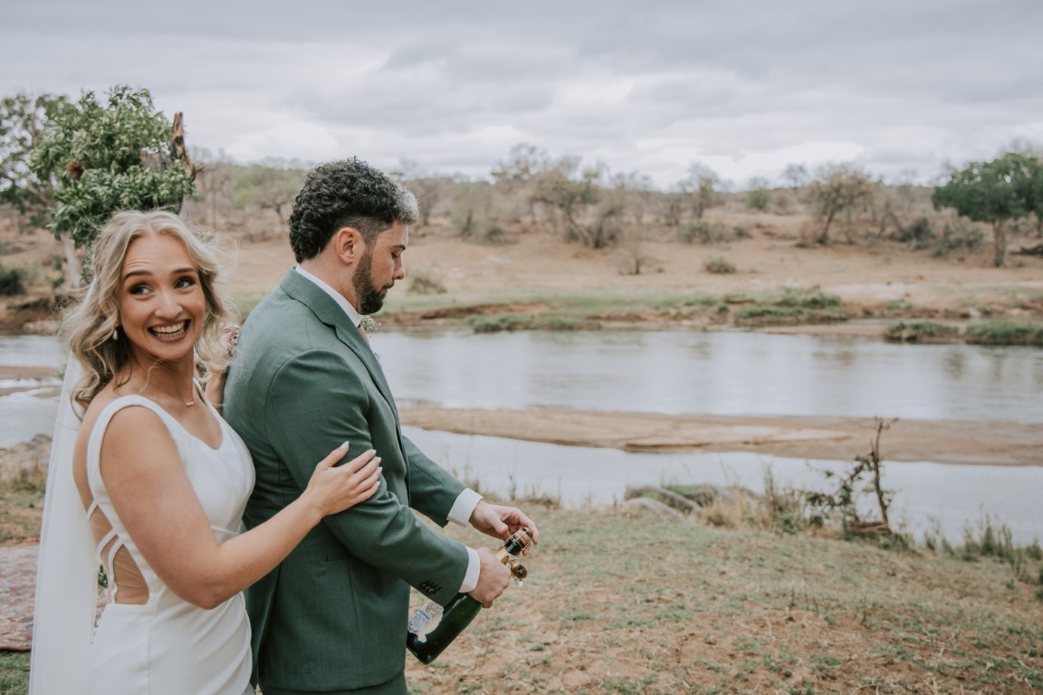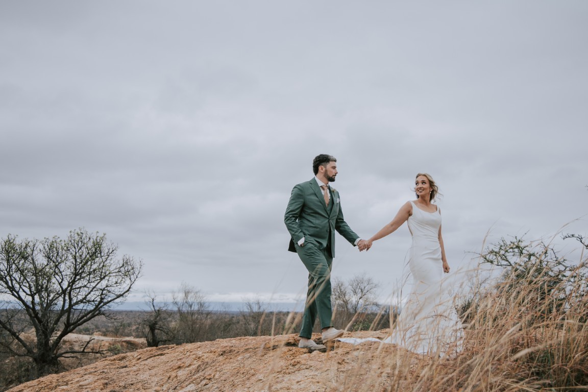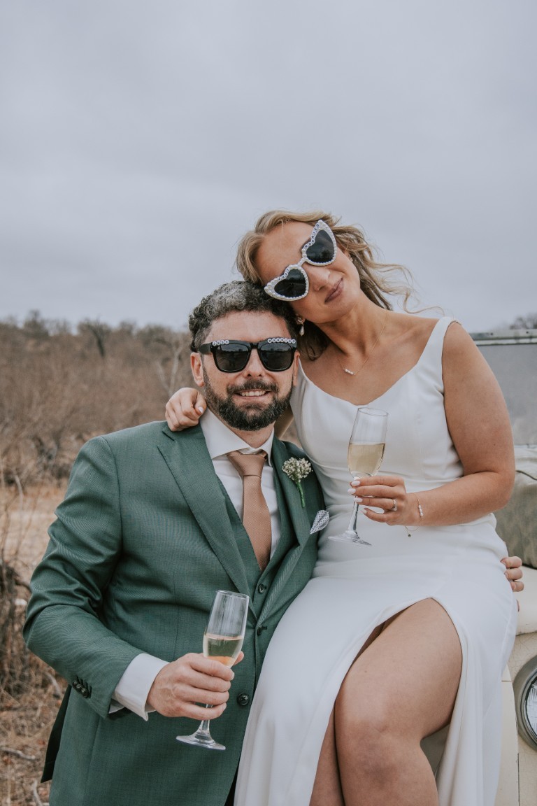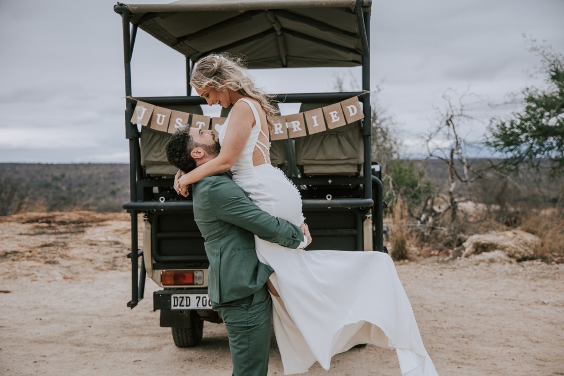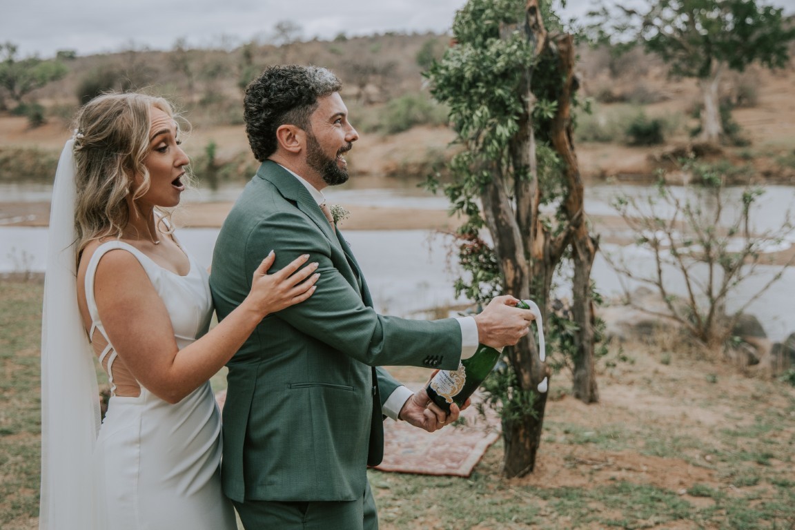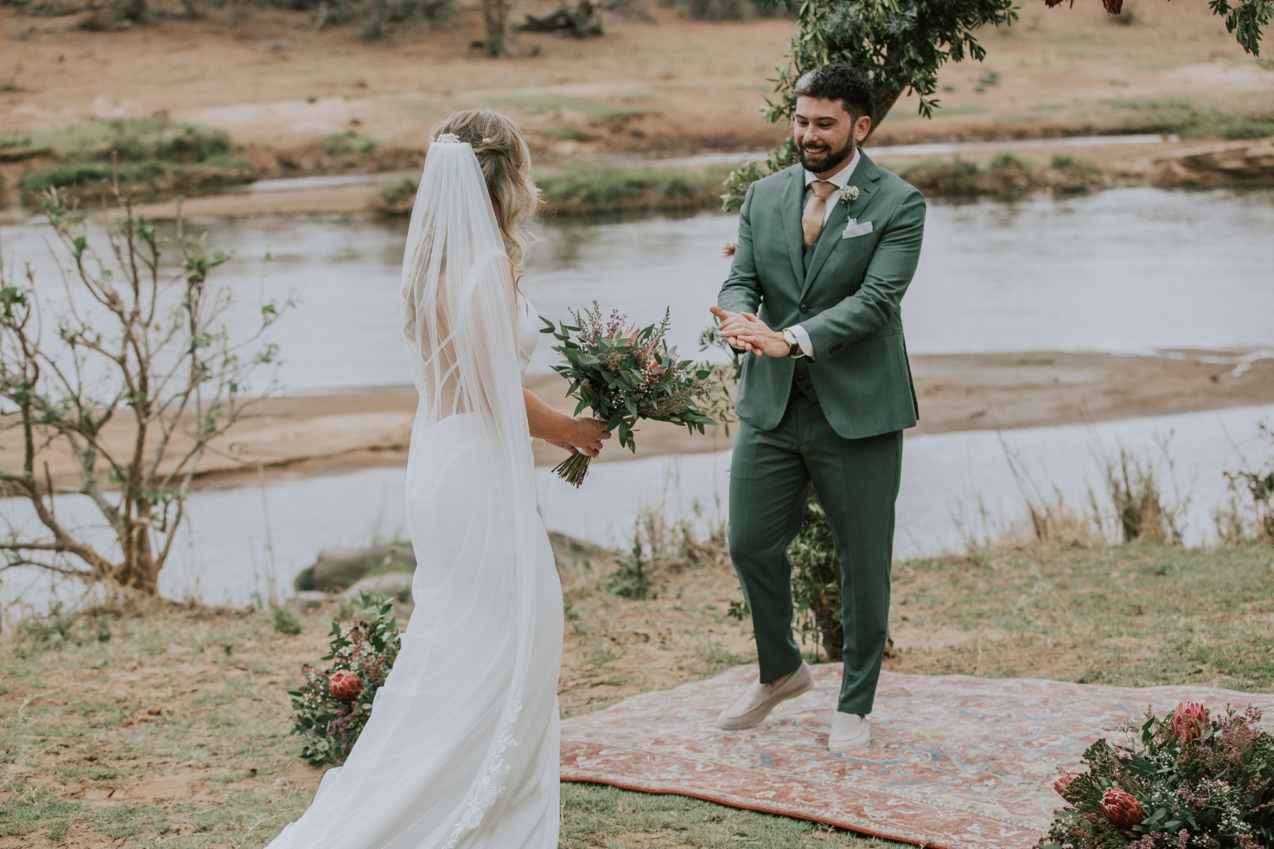 In het hart van de Afrikaanse bush gaven zij elkaar het jawoord, omringd door een indrukwekkend landschap en wilde dieren op de achtergrond. De uitgestrekte natuur en het pure karakter van de omgeving zorgden voor een unieke en ontspannen sfeer – precies zoals zij het voor ogen hadden.