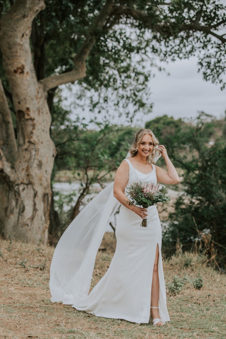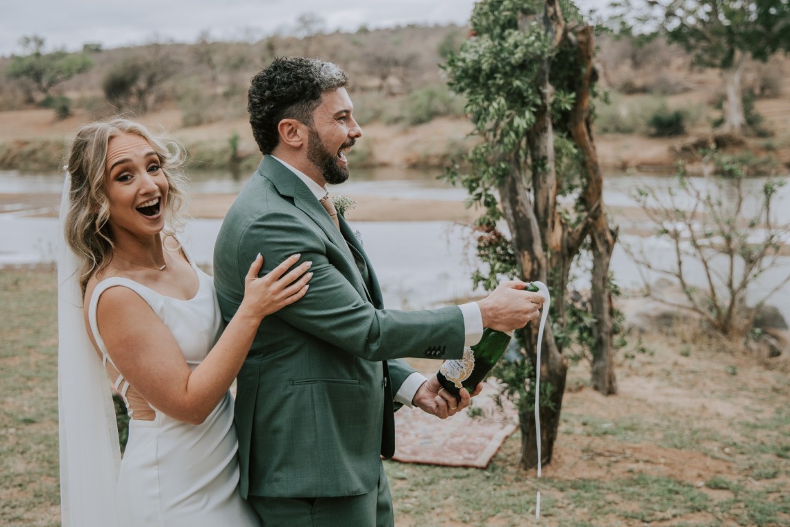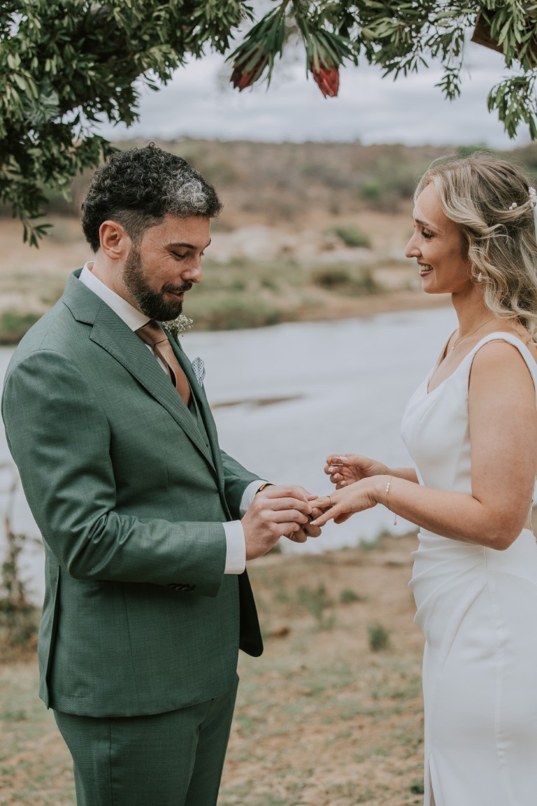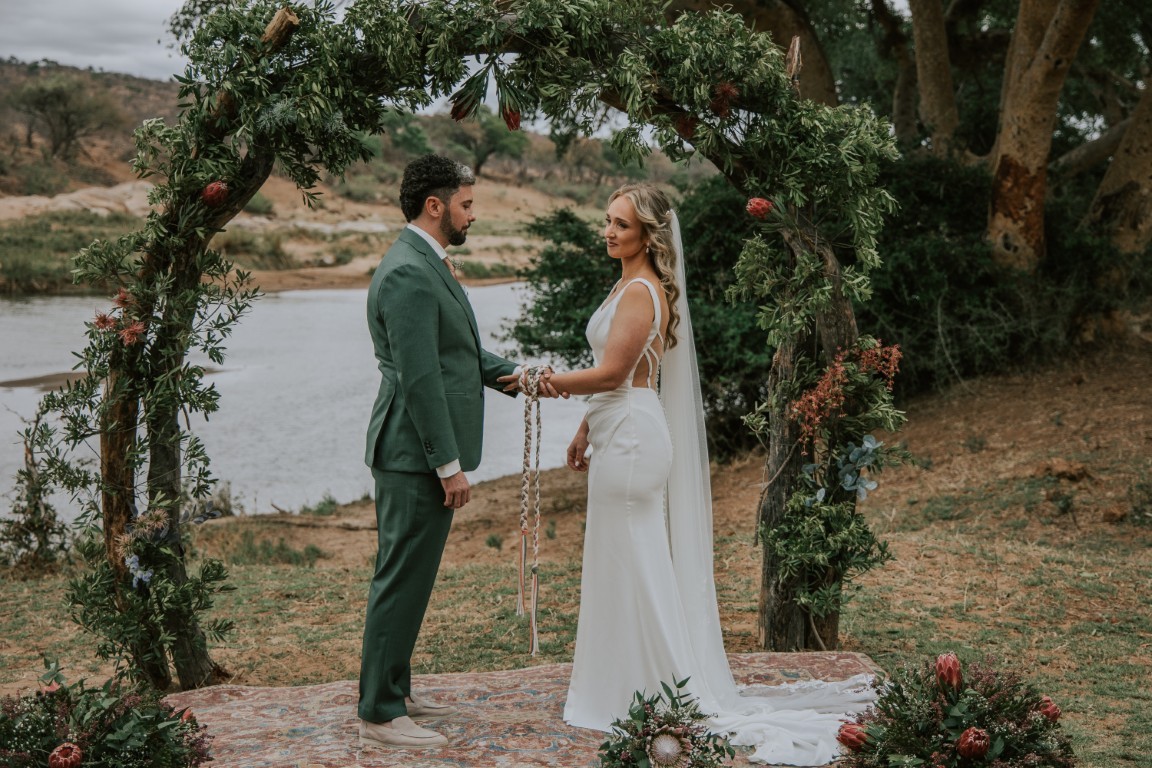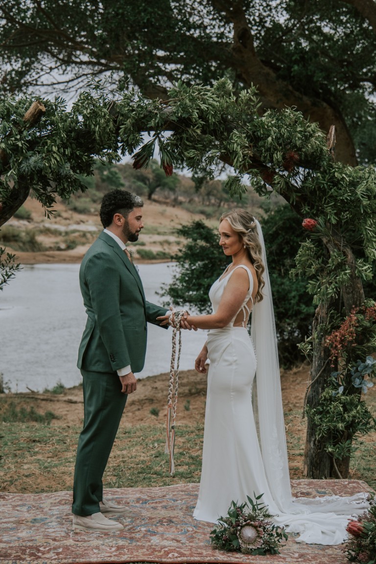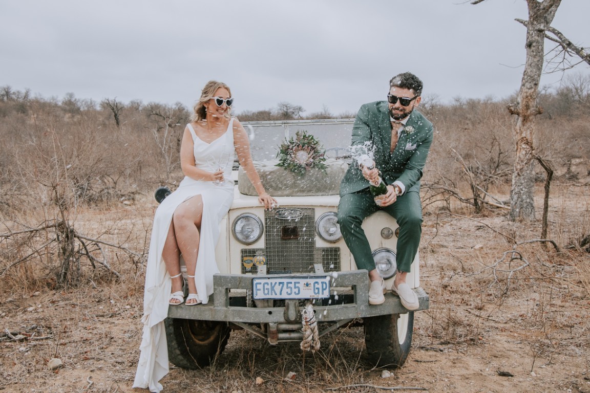 In het hart van de Afrikaanse bush gaven zij elkaar het jawoord, omringd door een indrukwekkend landschap en wilde dieren op de achtergrond. De uitgestrekte natuur en het pure karakter van de omgeving zorgden voor een unieke en ontspannen sfeer – precies zoals zij het voor ogen hadden.
