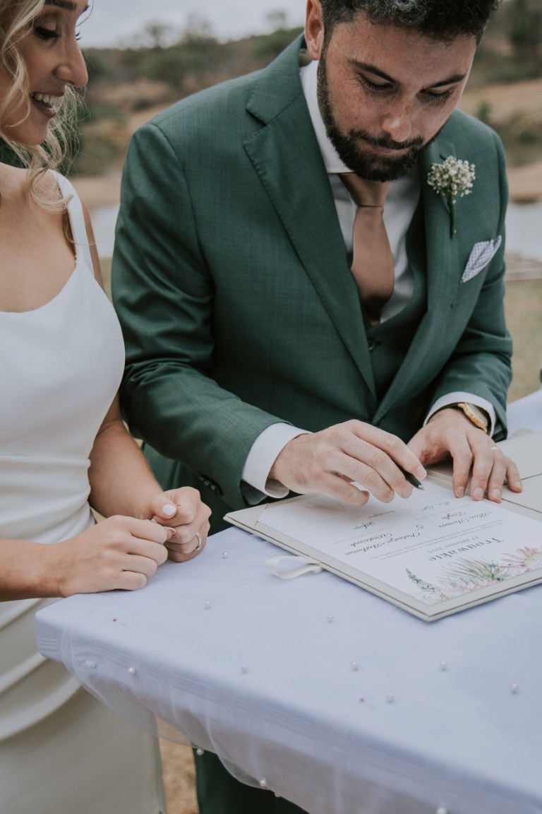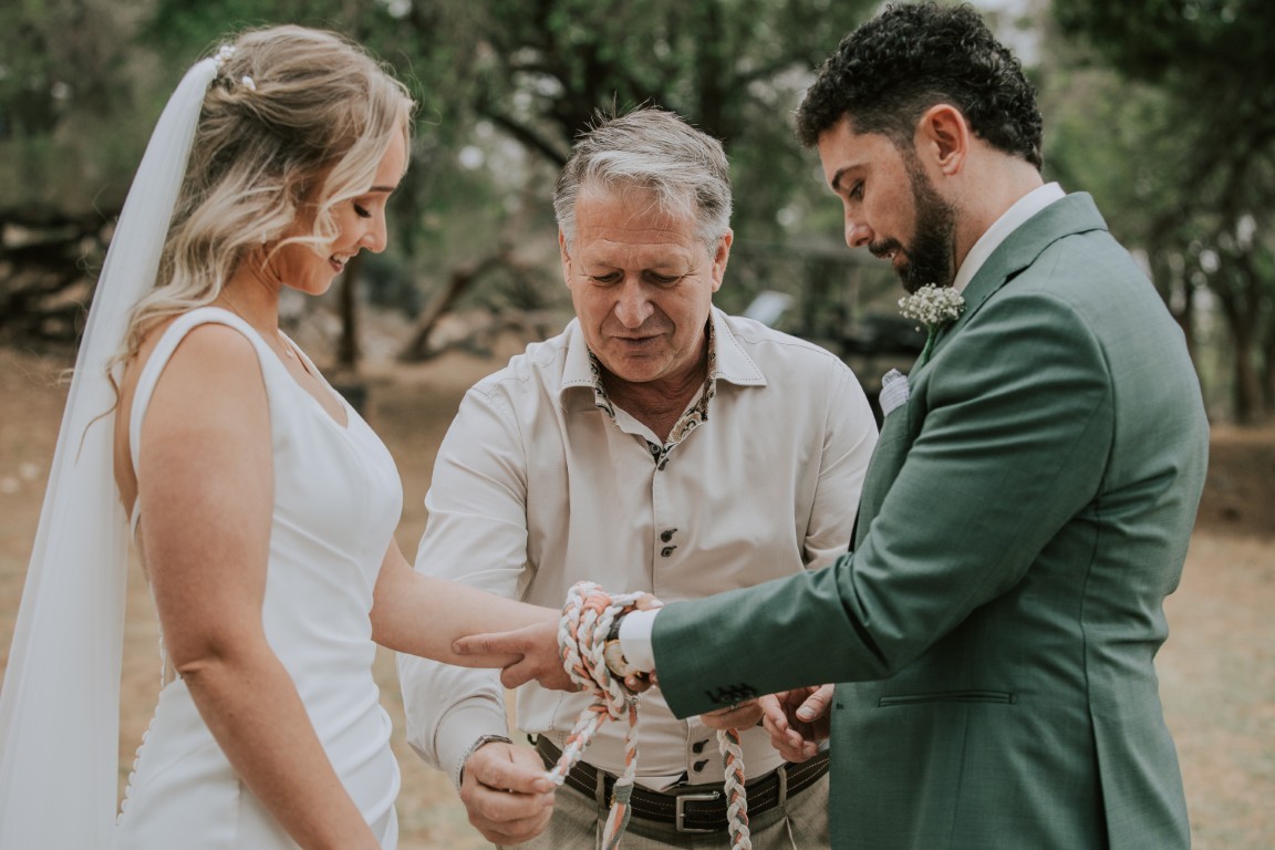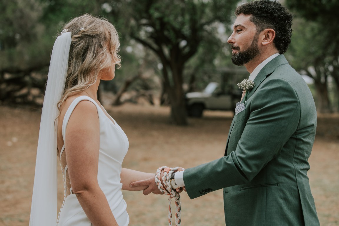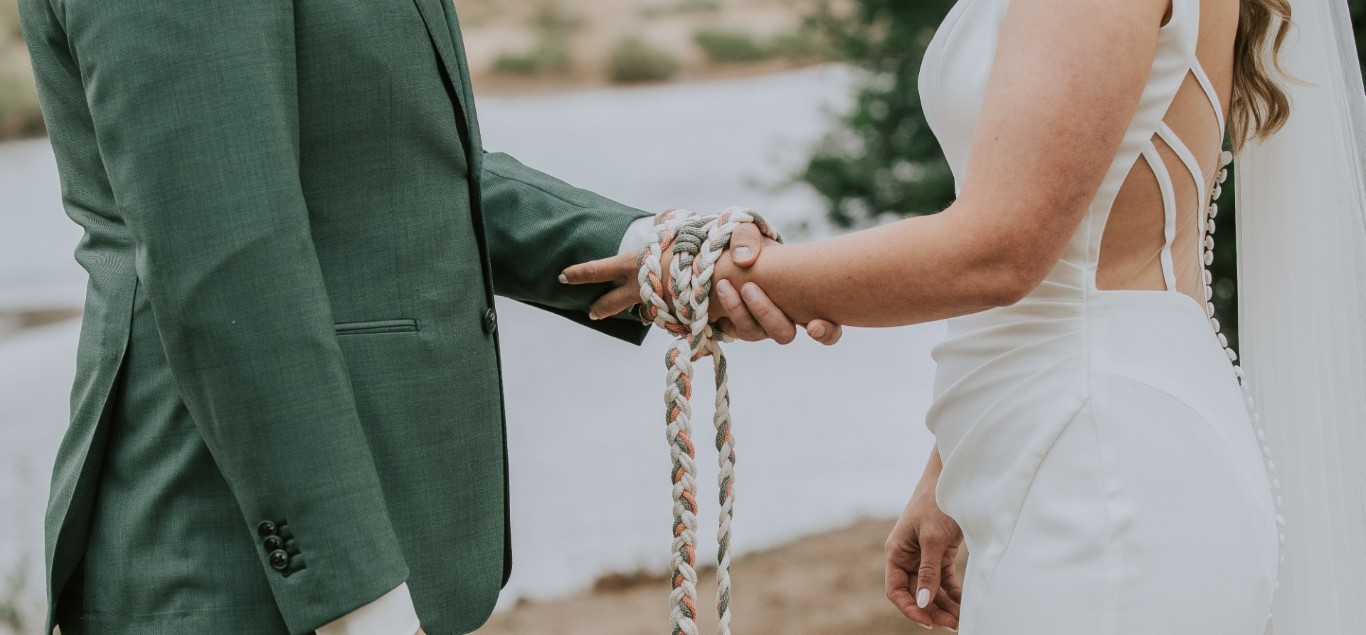 Tijdens de ceremonie kozen zij ervoor om een prachtige Ierse traditie toe te voegen: het symbolische “tie the knot”. Met een lint werden hun handen samengebonden als teken van verbondenheid, een ritueel dat hun liefde, eenheid en toewijding op een bijzondere manier onderstreepte. Een mooi en persoonlijk moment dat extra betekenis gaf aan hun ja-woord.