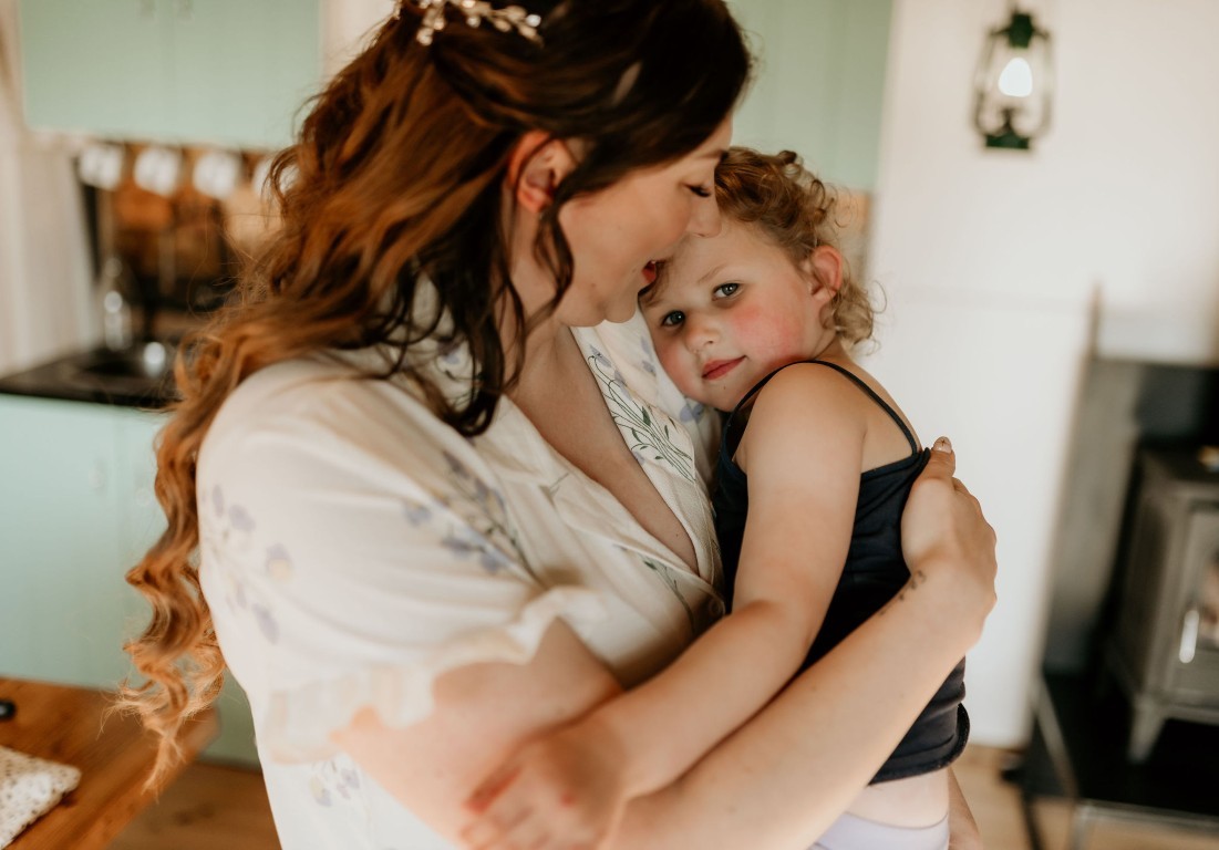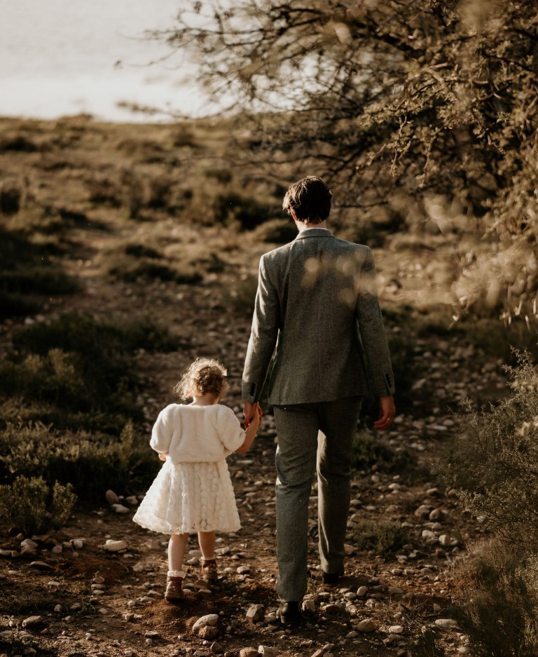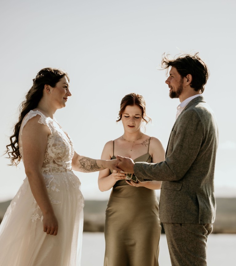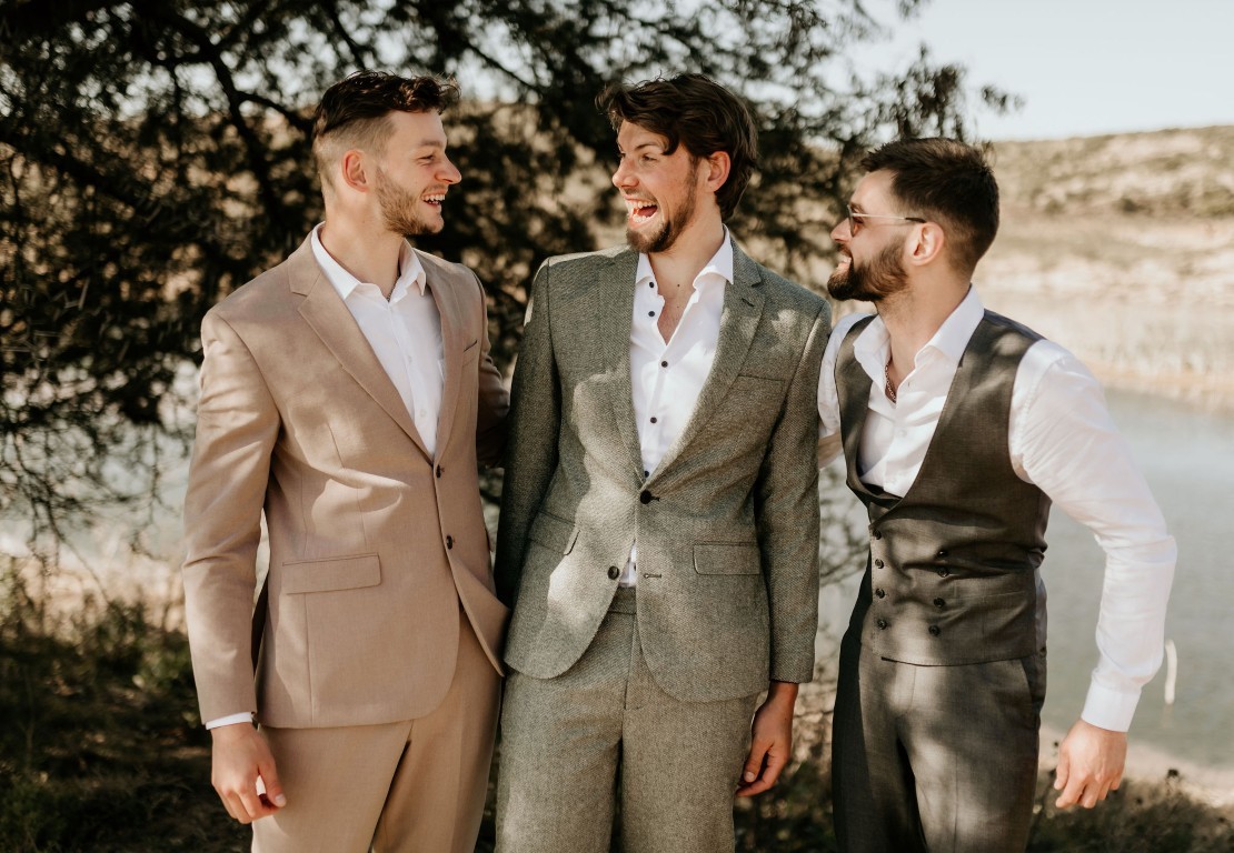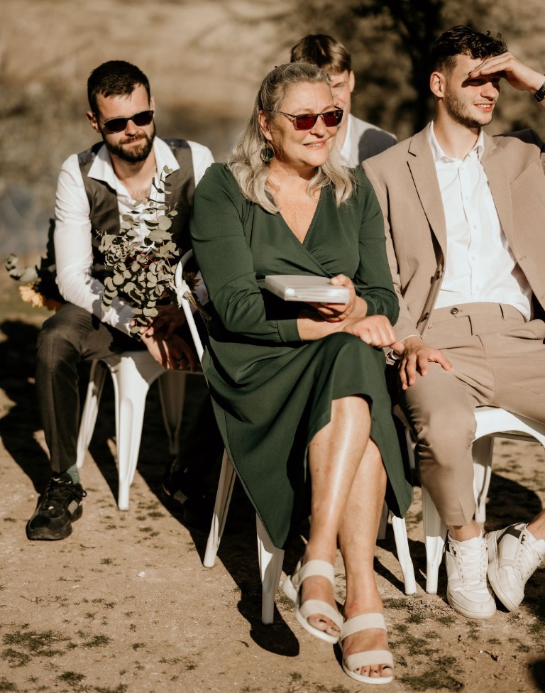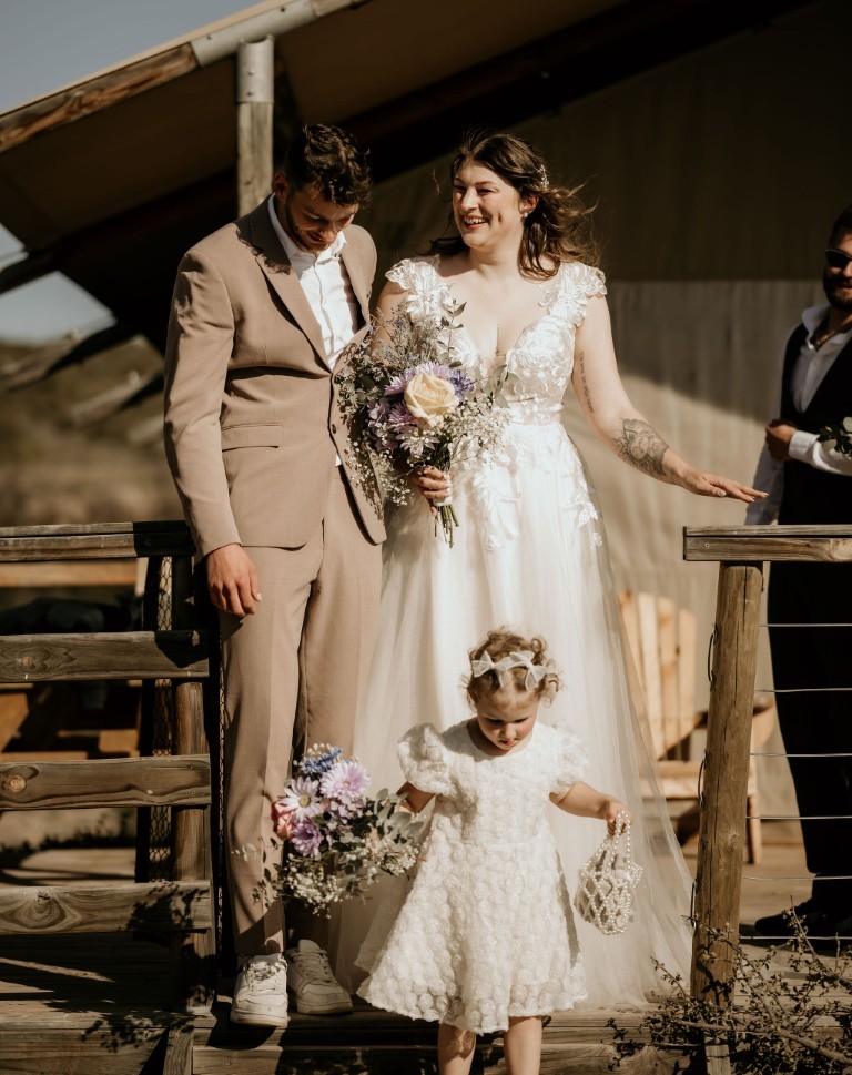 Op het afgesproken tijdstip haalt de bruidegom iedereen op en gaan ze klaarstaan bij het water. Bascha en hun dochter zijn de fotograaf aan het halen en komen er zo aan, verteld de bruidegom.