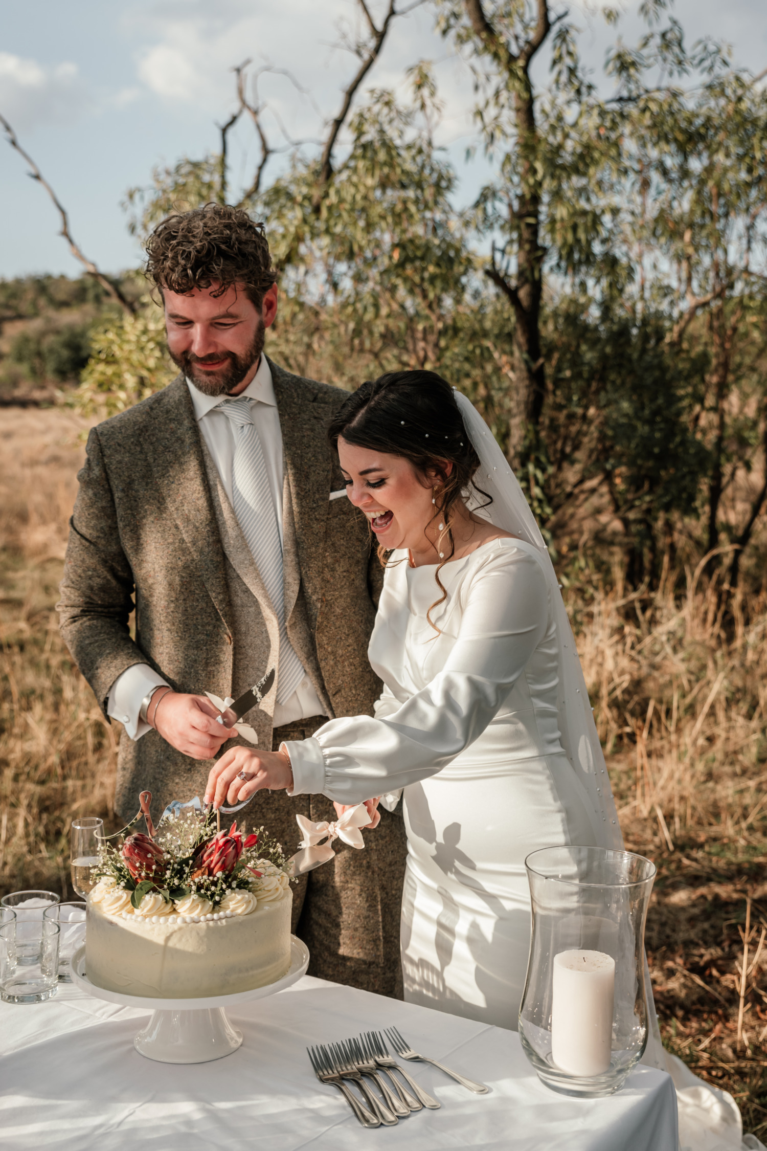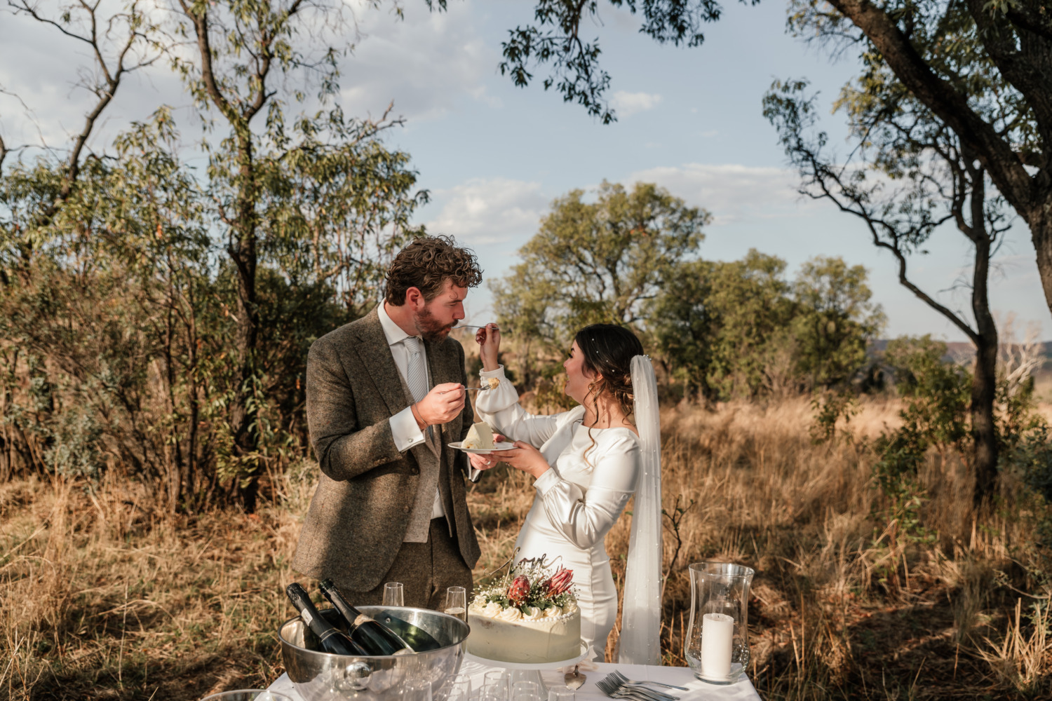 Dit ontzettend lieve stel trouwden samen met hun familie en vrienden, midden in de bush, tussen de wilde dieren, in Zuid-Afrika!